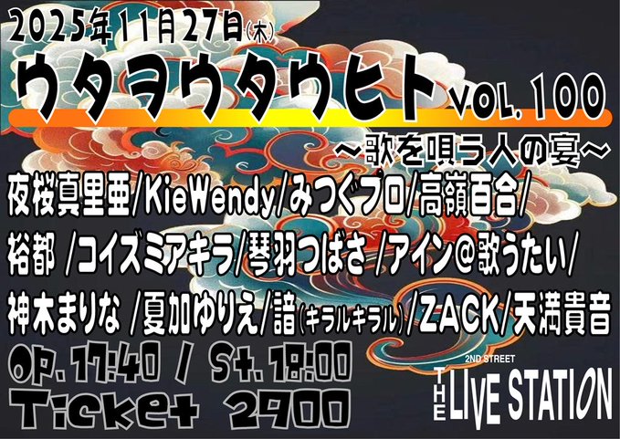 2025.11.27㈭『ウタヲウタウヒトVol.100』にお越しの皆様、スタッフ様、出演者様、応援してくださった方々、どうもありがとうございました!!