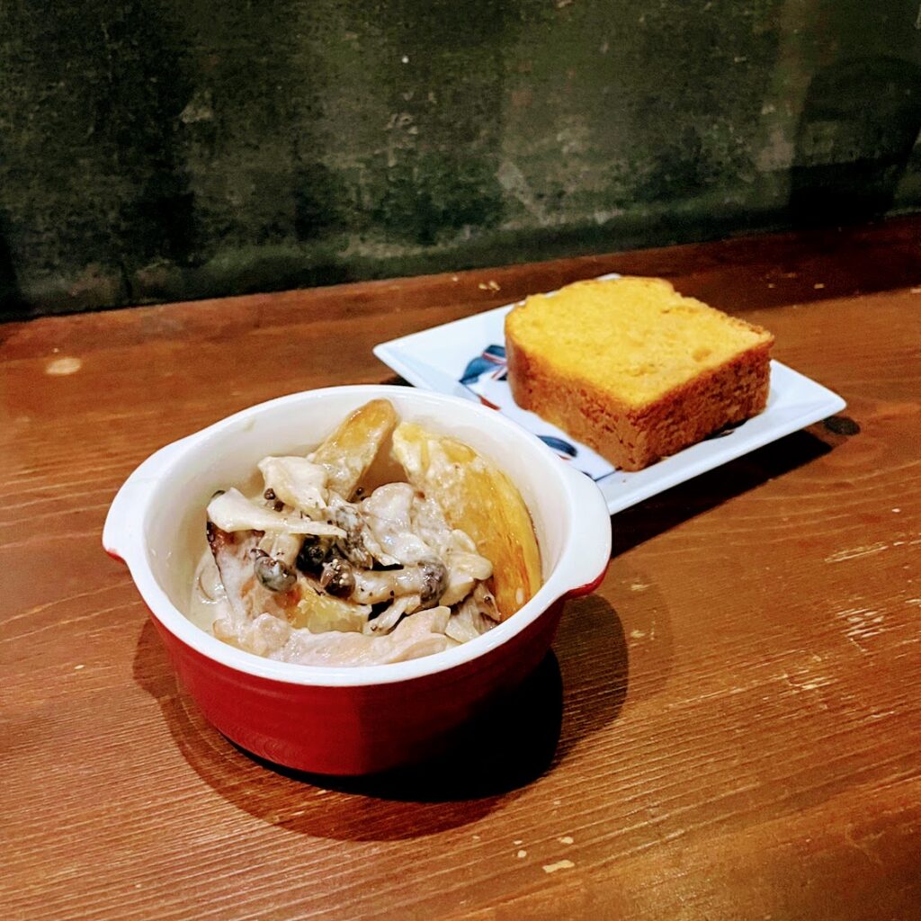 悪魔的!濃厚チキンのクリーム煮 …チーズとガーリックをためらいなく使用した重罪メニューです(笑)せっかくの音楽酒場、日常の有象無象やカロリーのことは忘れて美味しく召し上がっていただければと気持ちもあれもこれも込めて作りました🍳